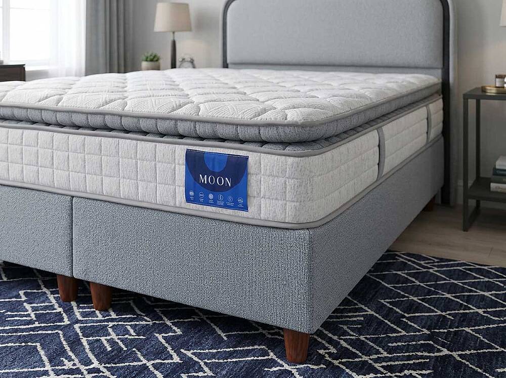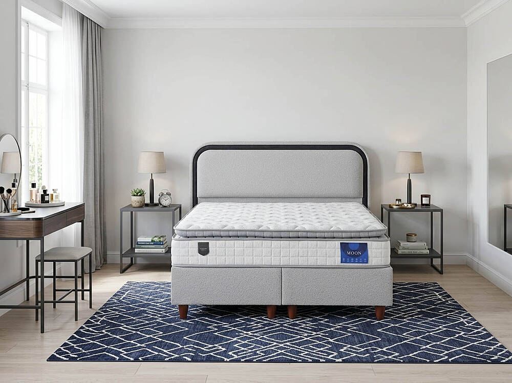 Moon 3'lü Set, modern tasarımı ve yüksek konforu ile yatak odalarınıza şıklık katıyor. Yüksekliği 29 cm olan yatak, paket yaylı yapısıyla mükemmel bir uyku deneyimi sunar. Orta sertlikteki yatak, her uyku pozisyonuna uygun bir destek sağlar.